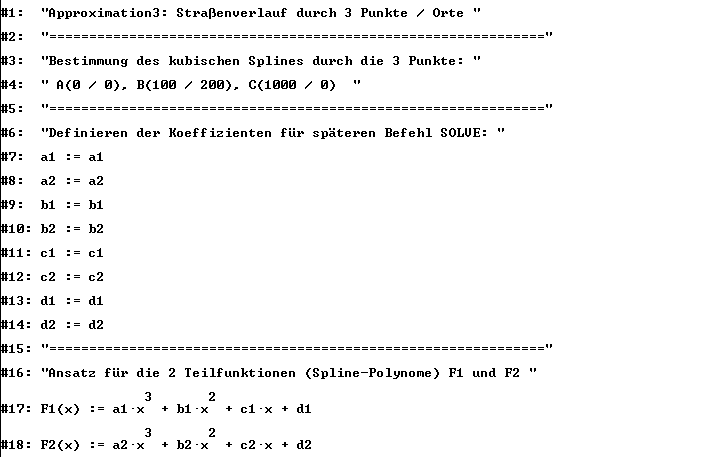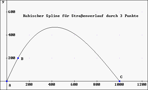 Anmerkung: Der gefundene kubische Spline erscheint allerdings für den Straßenverlauf weniger geeignet.
