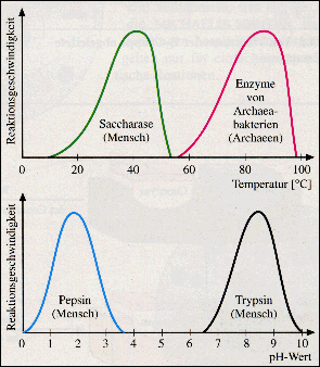 geht die Reaktionsgeschwindigkeit allerdings zurück. Das Eiweißmolekül