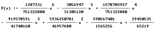 Entweder benutzt man zur Lösung dieses Gleichungssystems den Befehl SOLVE > SYSTEM (was hier sehr mühsam ist) oder man benutzt den SOLVE-Befehl sofort: SOLVE([F(4)=0, F'(4)=0, F(8)=100, F(10)=250, F(15)=620, F'(15)=0, F(20)=600],[a,b,c,d,e,g,h]) . DERIVE liefert nun als Lösung: Mittels der CHI-Funktion lässt sich dann der zugehörige Graph im Bereich [4; 15] im Graphikfenster von DERIVE veranschaulichen mittels der Befehlszeile CHI(4,x,15)*F(x) , die dann nur noch berechnet werden muss (vgl. DERIVE-File Windkraft.mth ). Im Intervall [15; 20] muss allerdings ein Geradenstück gezeichnet werden. |