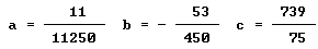 SOLVE([V(30)=7.2, V(70)=6.4, V(120)= 9.8],[a,b,c])