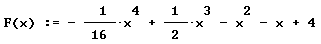 SOLVE([f(0)=4, f(2)=1, f(4)=0, f '(0)= -1, f '(4)=0],[a,b,c,d,e])